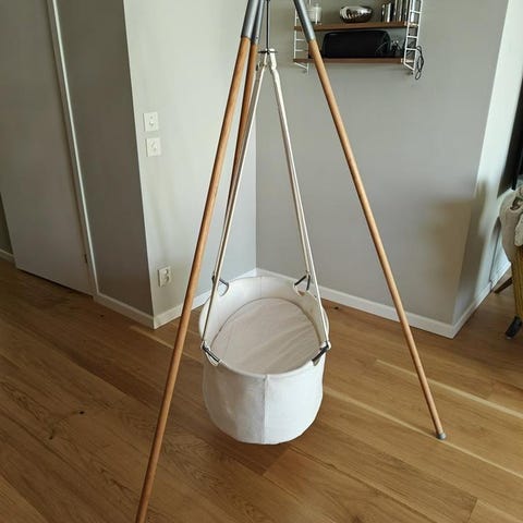 Säljer Dyna hänganordning med krok, inklusive madrass. Mått: 84 × 51 × 36 cm. I mycket gott skick och väldigt bekväm för bebisens vila.