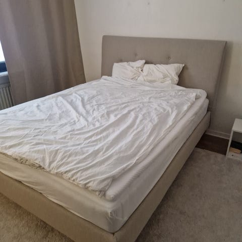 Säljer en dagbädd i perfekt skick. Säljes med två madrasser 80x200 cm, när sängen dras ut är den 160x200 cm. Madrasserna har alltid haft madrasskydd.