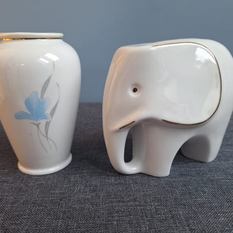 Fin elefant med sin baby elefant i guld melerad fin prydnad 11 cm hög