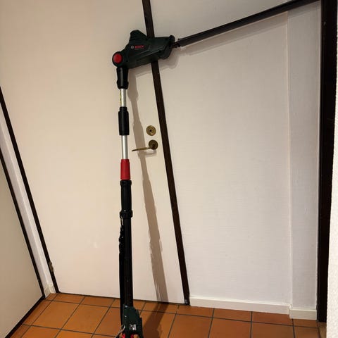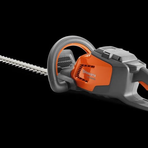 Detta är en bensindriven kombimaskin för trädgårdsarbete, som kan fungera som röjsåg, grästrimmer, häcksax och grensåg beroende på vilket tillbehör som används.