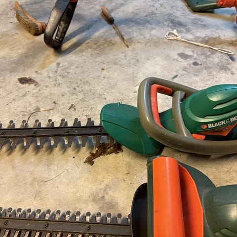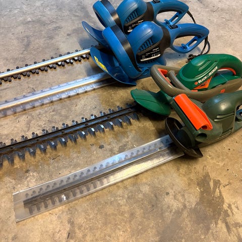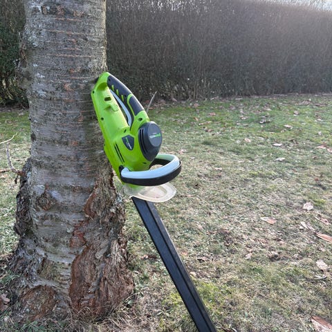 Fyra redskap i en maskin: röjsåg, grästrimmer, häcksax och grensåg.