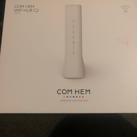 Technicolor Com Hem Router. En nätverksrouter avsedd för internetanslutning, med anslutningar för nätverkskablar. Produkten levereras med tillbehör inklusive strömadapter och nätverkskablar samt användarmanualer.