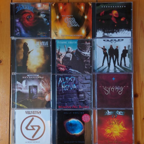 Alla dessa CD skivor och någon DVD inom metal och hårdrock, som visas på bild. (Mer specifikt lista kan skickas vid intresse)