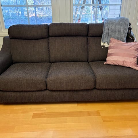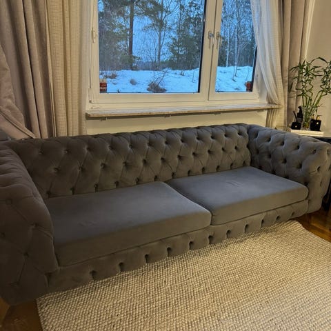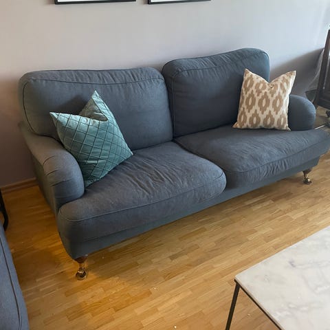 3-sits med måtten L 210 , djup 90 cm , sitthöjd 46 cm. Pris 2 500 kr