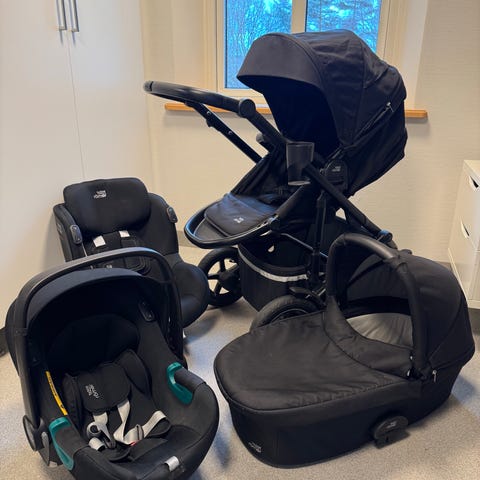 Britax z5 smile, sitt och liggdel. Ni får även med adapter till babyskydd även regnskydd till sitt och liggdel även myggnät.
