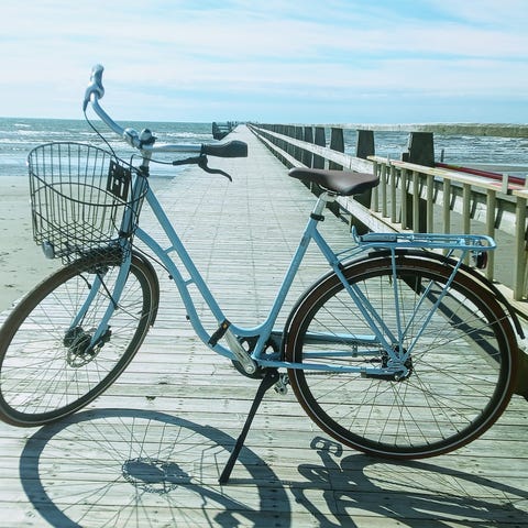 Röd damcykel med korg och pakethållare