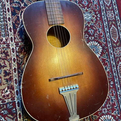 70-tals Aria akustisk gitarr. Synligt slitage men inget fel på ljud och spelande.