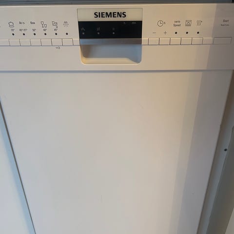 Miele underbyggd diskmaskin med integrerad frontpanel i trä. Maskinen har två korgar för disk och är avsedd för inbyggnad under köksbänk. Utrustad med standard anslutningsslang för vatten och el.