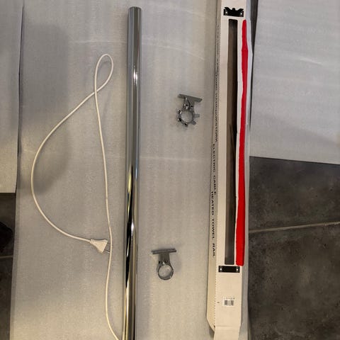 Handdukstork i krom med bredd 490 mm. Passar för badrum eller kök för att hänga handdukar eller andra blöta textilier. Enkel att montera och ger en funktionell lösning.