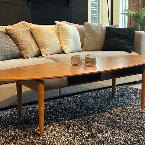 Säljer ett soffbord från IKEA. Det är en tidigare modell av Stockholm. Det är lite kantstött och min hund har tuggat på ett av benen. (se bild).