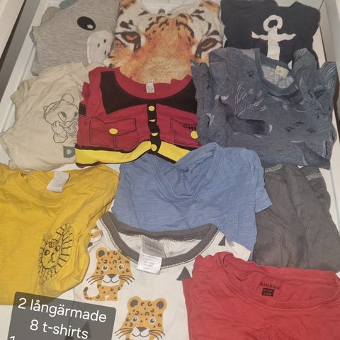2 h&m jackor storlek 98-104, den svarta jackan som ny. 2 koftor h&m storlek 92, keps och linne.