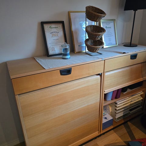 Trähylla med 20 st fack lämpligt för förvaring av Laserfoil eller kvartskivor av annat lasermaterial t.ex. Laserply.