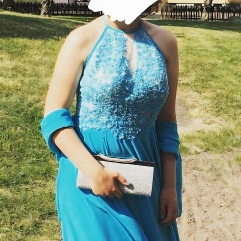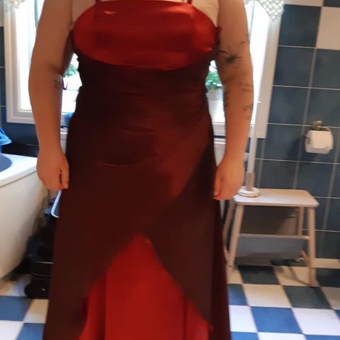 Grön balklänning inköpt inför student för ett antal år sedan. Klänningen är fodrad. För storlek, se bild.