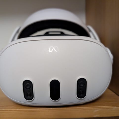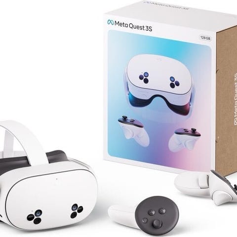 Meta Quest 3S VR-headset med tillhörande handkontroller, som är i princip som ny.