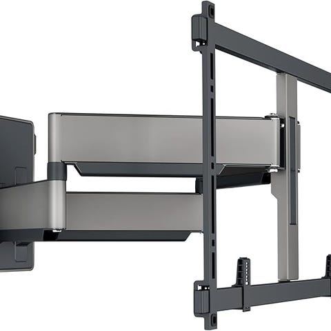 Detaljerad bild av ett svart, justerbart TV-väggfäste, som visar den robusta konstruktionen och smidiga svängmekanismen, med en maximal lastkapacitet på 60 kg.