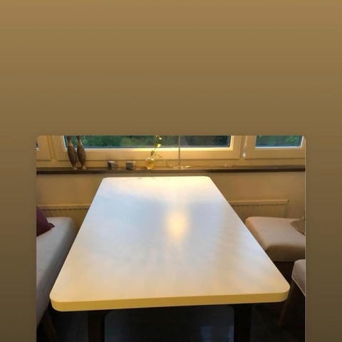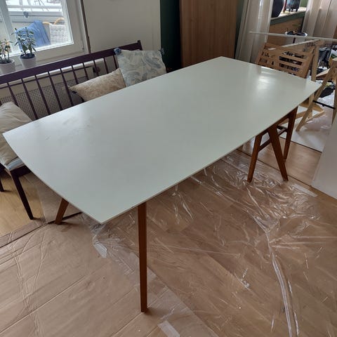 Varsamt använt köksbord. Lite nött färg i kanten.