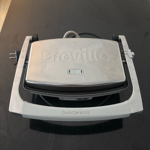 Paninigrill med keramisk non-stick-beläggning som förhindrar att bröd, ost och liknande bränner fast. Grillplattorna går enkelt att ta av och rengöra efter användning. Grillen har åtta tillagningsprogram och temperaturen kan ställas in på mellan 80 och 220 grader i upp till 60 minuter. En stektermometer medföljer som kan mäta temperaturer mellan 45 och 90 grader.