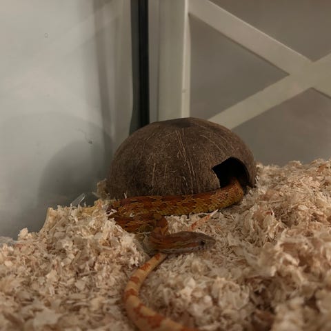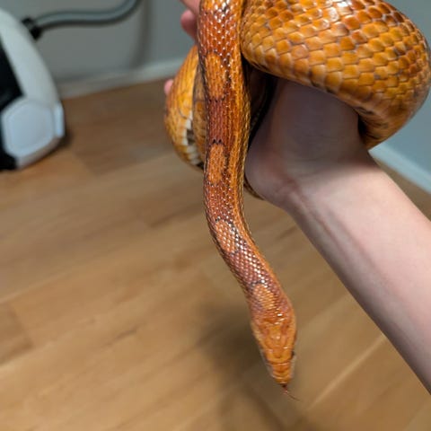 Albino majsorm hane, en jätte trevlig kille perfekt för någon som är i början av sitt reptil intresse och vill ha en lätt hanterlig orm. Äter och ömsar som han ska. Osäker på exakt ålder men runt två år. Vid frågor är det bara att skicka iväg ett meddelande.