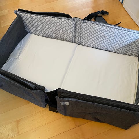 En smidig allt-i-ett-resesäng som fälls upp på en sekund – redo för både vila och lek direkt.