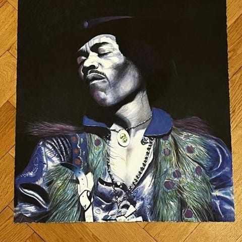 Tryck av Jimi Hendrix enligt bild 55x40 cm