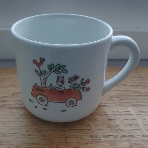 Vintagekopp och fat. Blå dekor, serien Ali från Arabia - Raija Uosikkinen.