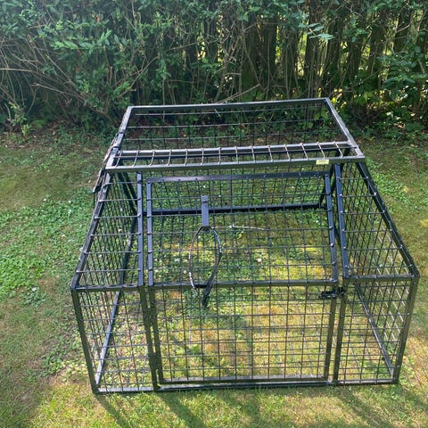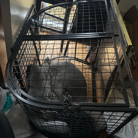 Hundbur i aluminium. Robust design med möjlighet att sätta hänglås om man vill lämna bakluckan öppen.