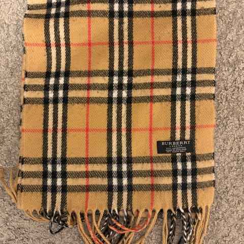 Burberry Halsduk tillverkad i kashmirmaterial med flerfärgat rutmönster. Passar som en one size accessoar för män. Halsduken har fransar i ändarna och en etikett med Burberrys logotyp. Den är vintage och äkta. Köpt från en välkänd vintage butik. Inget slitage den är i fint skick.