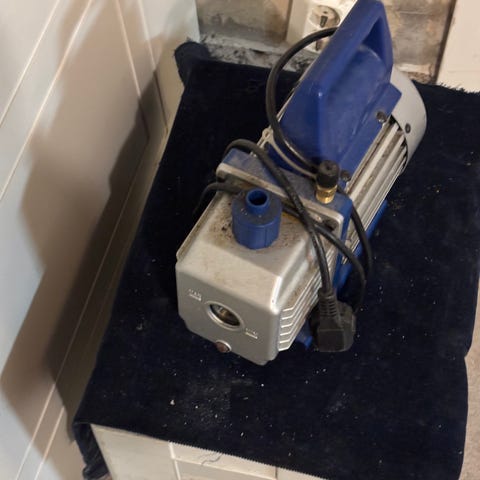 2-Stage Vacuum Pump med kapacitet på 2.5 CFM. Produkten är avsedd för vakuumapplikationer och är utrustad med två steg för effektivare pumpning.