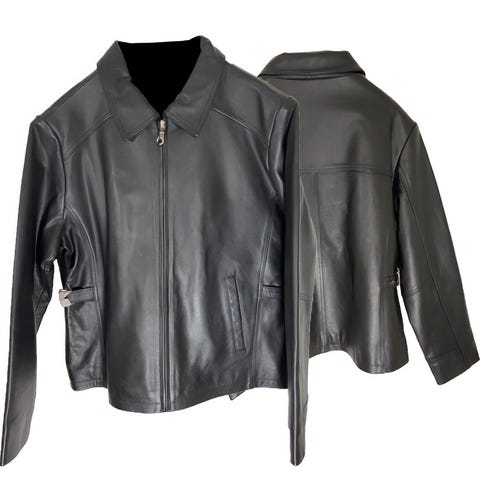Ett parti snygga skinnvästar i svart färg för unisex. Västarna har knäppning fram och sidostängning med snörning. Två innerfickor och två ytterfickor.