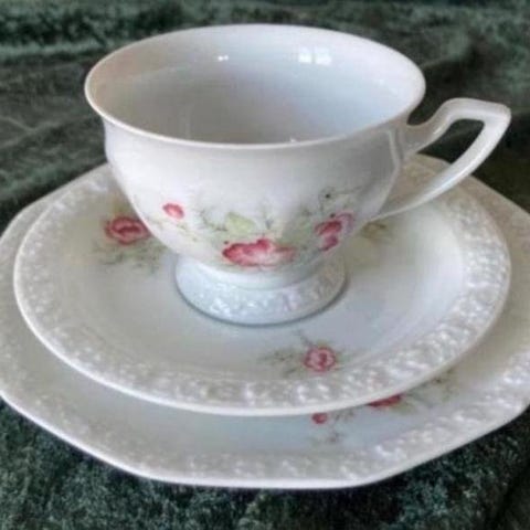 Vit porslinsgräddkanna med silverkant. Hel och fin, inga nagg eller sprickor.