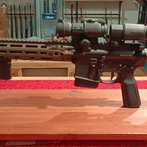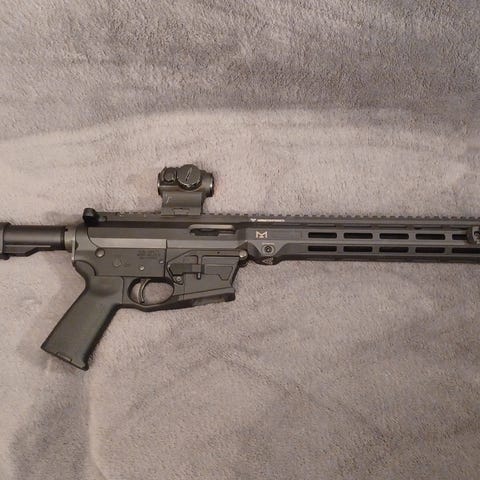 Säljer en begagnad Messerschmitt AR-15 i kaliber .223 i hyggligt skick. Pipan är 46cm och gängad 1/2"x28. Observera att man inte längre får jaktlicens på detta vapen.