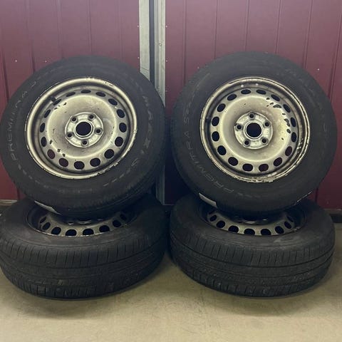 En fälg har en mindre skada, inget som påverkar användning eller säkerhet.