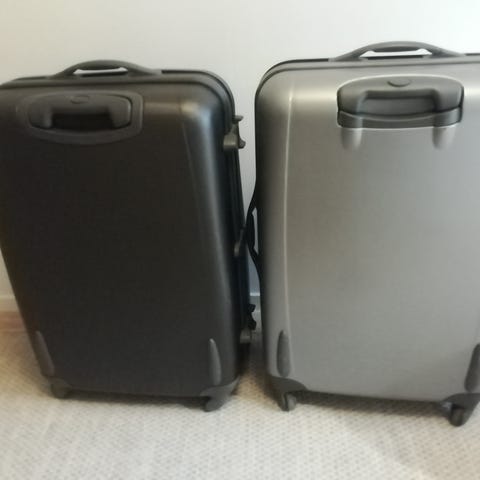 2 stycken fina resväskor säljes av tyg en medium en liten styck 50 kr