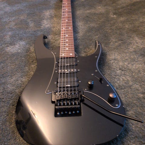 I grunden en JemJr-y som jag bytte hals på till en rg350mz då jag gillar lönnbrädor och prickar bättre än jatobi och blomrankor.