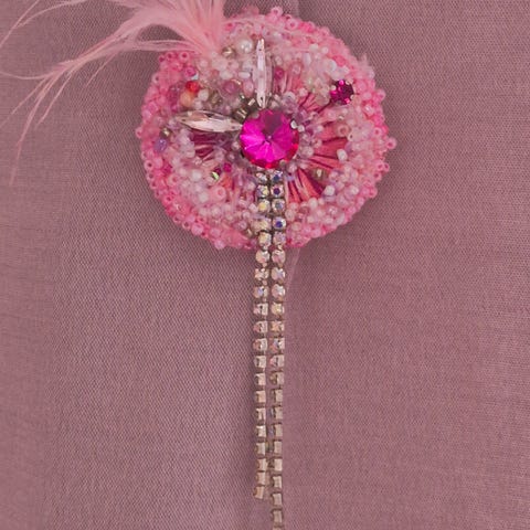 Jättefint och ser handgjort ut med emaljerade detaljer,och strassstenar på i milda rosa toner