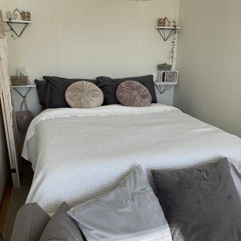 Lyxig 140 cm kontinentalsäng i grå sammet (Celine, från Trademax), gavel ingår. I mycket bra skick, sparsamt använd. Har inga tecken på användning, ser ut som ny.
