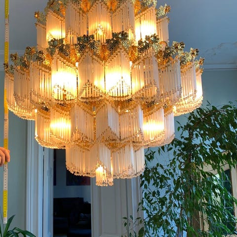 En otroligt vacker och ovanlig lampa från Murano. Lampan har 48 glas och ger det lilla (eller stora) extra i ett rum. Finns i Norrmalm/Vasastan.