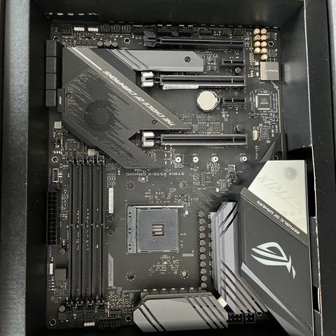 Säljer mitt Asus ROG Strix Z490-A Gaming moderkort med stöd för Intel-processorer. Moderkortet har en vit och silverfärgad design och är utrustat med flera expansionsplatser för RAM och PCIe-enheter. Säljes då jag byggt en ny dator. Jättebra skick förutom att GPU-låset lossnat (bild 3) på den högsta PCIe platsen. Det är dock inget som påverkar något, grafikkortet sitter fortfarande fast och påverkar inte något annat.
