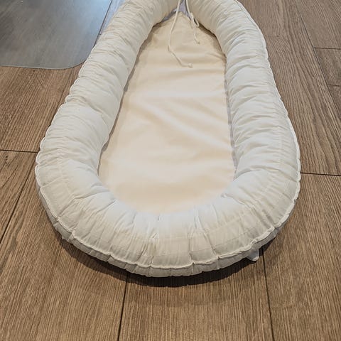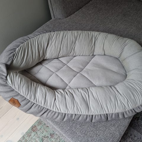 Baby nest i mycket bra skick. 60cm. Grått med vita stjärnor. Djur och rökfritt hem.