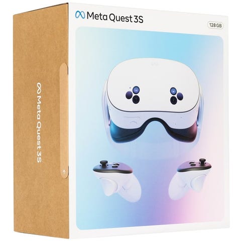 Meta Quest 3 VR-headset för virtuell verklighet. Produkten inkluderar headset och kontroller, avsedd för användning med olika VR-applikationer och spel.