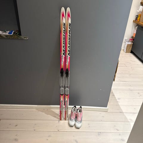 Rossignol längdskidor 130cm inkl pjäxor stavar