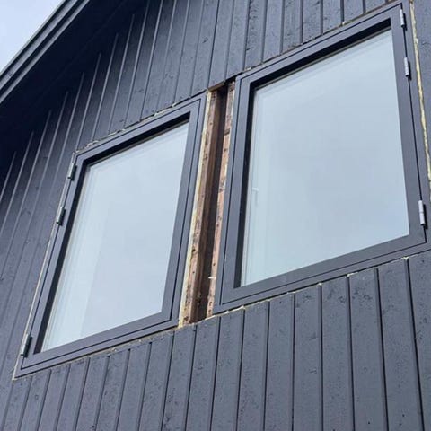 Två fönster (tillv. 2008) 3-glas isolerruta. Tillverkade av svensk furu med aluminiumbeklädd utsida. Rötskydd och högklassigt fabriksmålad ytbehandling. Bra isoleringsförmåga med U-värde 1,1. (Altandörr finns i samma stil - säljes i egen annons).