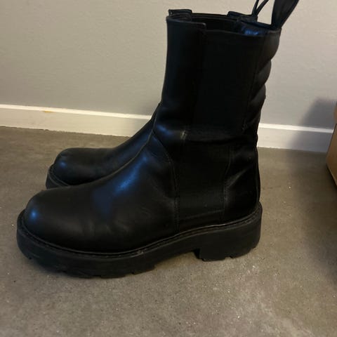 Vagabond stövlar i storlek 38, svarta, med snörning fram och dragkedja på sidan. Skorna har en tjock sula.