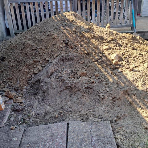 Vi har en del fyllnadsjord som bortskänkes mot hämtning. Har tidigare varit en lastbil här och hämtat och den tog ca 12 ton per lass. Uppskattar att det finns ett sånt lass kvar att hämta. Kanske lite mer.