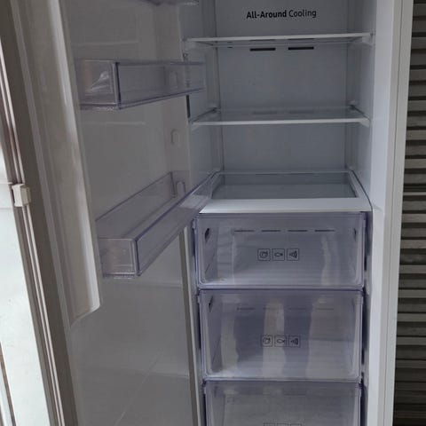 Frys inköpt sommaren 2025. En liten skada på dörren som inte påverkar funktionen på nåt sätt.