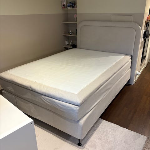 Fin säng kontinental från Jysk med beddmadrass och sänggavel säljes. (2,5år gamla)