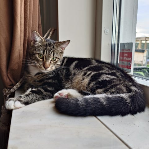 Molly, kastrerad är 4 år och älskar att vara ute och fånga möss. Så snäll och omtänksam, väldigt smart och duktig katt.