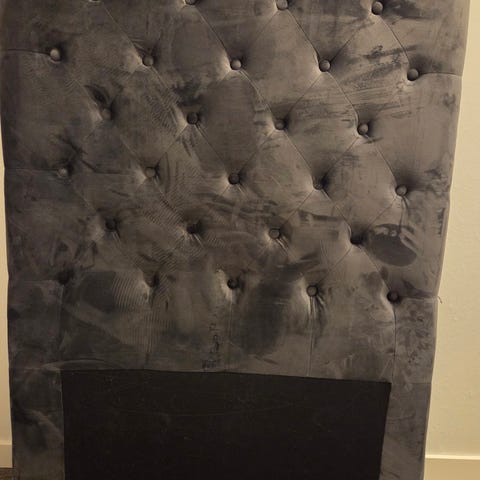 Säljer en mörkgrå sänggavel i sammet som är köpt från Jotex, använd i två år men finns inte märken eller skavanker.