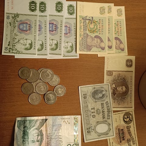 Samling äldre sedlar och kuponger