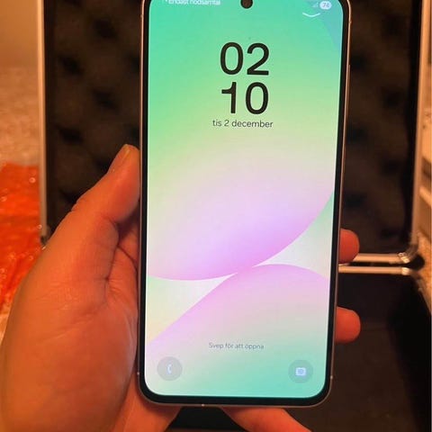 Säljer en Samsung Galaxy A56 i färgen Awesome Oliver med 8 GB RAM och 256 GB lagring.